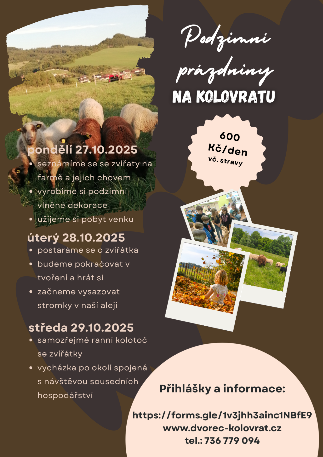 Termíny a zaměření příměstského táboru je zveřejněna na webových stránkách www.dvorec-kolovrat.cz
